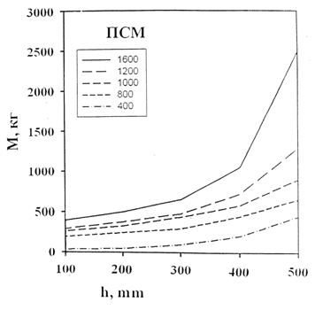 Характеристики конвейеров (ширина ленты, скорость движения, толщина слоя материала на ленте), характеристики самого транспортируемого материала (размер кусков, насыпная плотность, влажность, склонность к налипанию и т.д.), параметры ферромагнитных включений (размер, форма, состав и т.п.) варьируются в весьма больших пределах. Соответственно, в ООО "ПМТ и К" разработан и производится серийно, а в некоторых случаях по техническому заданию заказчика, широкий спектр моделей подвесных железоотделителей. Их массогабаритные характеристики, извлекающая способность, цена могут, в зависимости от решаемой задачи, отличаться в десятки раз. Это иллюстрирует рис.1, на котором масса подвесных сепараторов (значительную долю которой составляет масса постоянных магнитов) изображена в зависимости от ширины ленты конвейера и от глубины извлечения примесей.